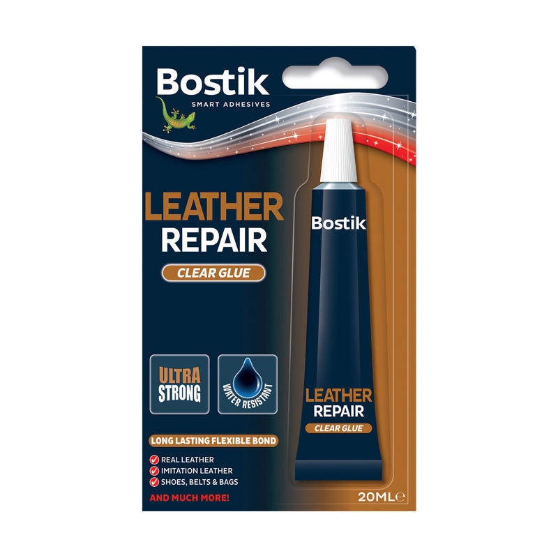 To Bostik Leather Repair είναι ένα extra δυνατό, διάφανο συγκολλητικό πολυουρεθάνης που στεγνώνει γρήγορα και είναι αδιάβροχο. Ιδανικό για μεγάλης διάρκειας και ελαστικότητας επιδιορθώσεις σε αντικείμενα από δέρμα ή απομίμηση δέρματος.